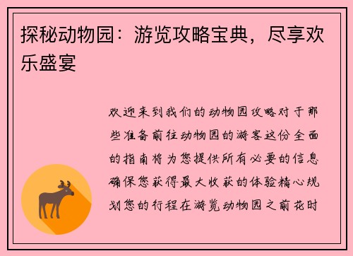 欢迎来到我们的动物园攻略!对于那些准备前往动物园的游客,这份全面的指南将为您提供所有必要的信息,确保您获得最大收获的体验。